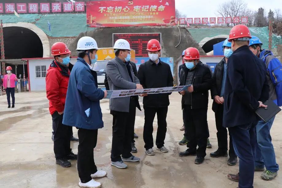 3月2日,陜西省交通廳副廳長黨延兵帶隊到旬鳳項目調研新冠肺炎疫情防控復工復產情況,省交通廳相關部門、衛健委專家及寶雞市交通局主要領導參加調研,集團公司副總經理、總工程師兼項目公司總經理龍偉等陪同調研。