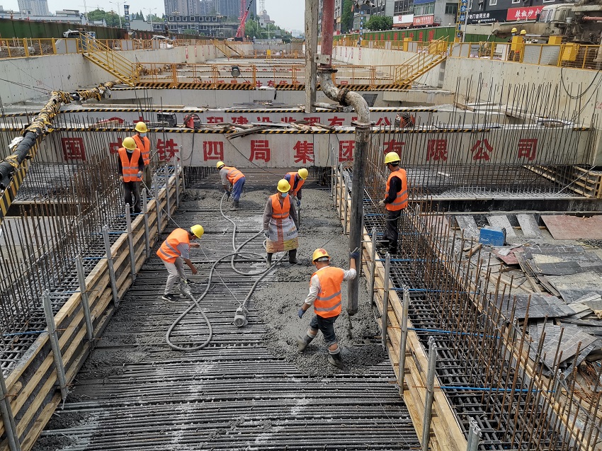 南昌地鐵4號線灌嬰路站位于撫生路與灌嬰路交叉路口,為地下二層島式結構,車站主體全長208m,標準段寬19.7m,采用明挖法施工。 灌嬰路站基坑屬于富水砂層地質,緊鄰贛江,地下水位高,基坑涌水涌沙風險極高。周邊地下管線眾多且管線遷改工作難度大,周邊交通繁忙,緊鄰商戶,施工阻力大。為確保車站施工安全與進度,車站自圍護結構施工以來,江西公司和項目部先后克服了管線遷改、交通導改等困難,通過優化施組方案、創新科研工法,在新冠疫情防控期間堅持節點工期不變原則,提前1天順利實現灌嬰路站封頂。
