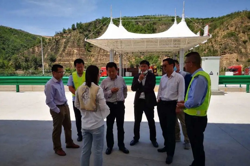 5月14日,陜西省收費中心主任王成、副主任王軍一行蒞臨綏延高速清澗南收費站開展高速公路恢復收費工作調研指導,綏延公司黨工委書記、財務總監等領導班子成員陪同調研。
