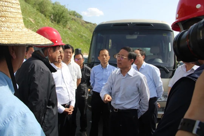 5月21日,陜西省交通廳廳長楊育生、副廳長黨延兵在延安市副市長王軍營、榆林市副市長張勝利等領導的陪同下,檢查調研了清子項目工程建設進展情況。