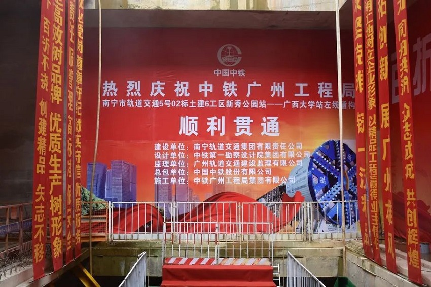 6月2日,南寧地鐵5號(hào)線(xiàn)新秀公園站—廣西大學(xué)站區(qū)間(以下簡(jiǎn)稱(chēng)“新廣區(qū)間”)中鐵裝備110號(hào)盾構(gòu)機(jī)安全到達(dá)鋼套筒內(nèi),實(shí)現(xiàn)雙線(xiàn)貫通!圓滿(mǎn)完成國(guó)內(nèi)首例大角度小半徑穿越富水圓礫地層運(yùn)營(yíng)線(xiàn)任務(wù)!為南寧地鐵5號(hào)線(xiàn)全線(xiàn)隧道貫通奠定了堅(jiān)實(shí)基礎(chǔ),打響了“抗疫情,保增長(zhǎng),大干100天”專(zhuān)項(xiàng)勞動(dòng)競(jìng)賽第一炮!