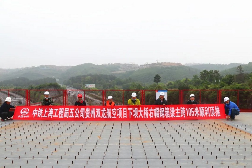 5月29日,由中鐵交通投資承建的貴州雙龍航空港項目物流外環道路下壩大橋工程,順利完成了貴州省最大跨度鋼箱梁頂推施工,標志著貴州省重點工程雙龍航空港物流外環道路工程建設進入最后沖刺階段。
