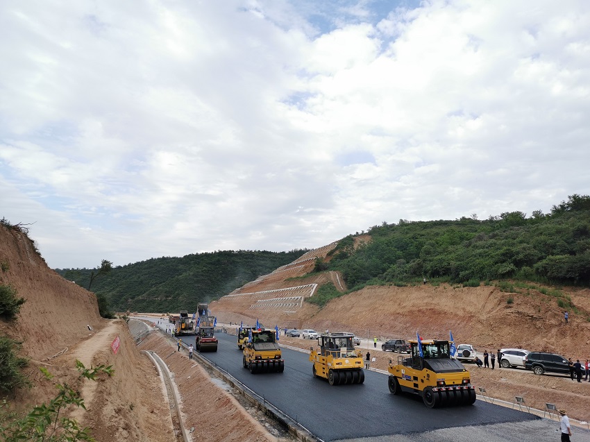 ▲九只窯進(jìn)口瀝青下面層試驗段碾壓施工
