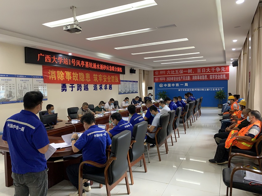 6月16日下午,南寧地鐵5號線指揮部聯合土建7工區開展基坑涌水涌沙應急聯合桌面演練活動。
