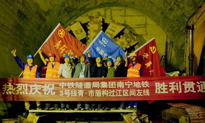 ▲青秀山站至市博物館站盾構過江左線隧道貫通