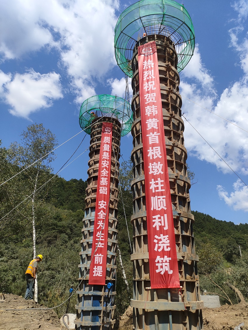 同日,韓黃高速公路項目重點工程沙曲河互通式立交B匝道橋第一根墩柱順利澆筑完成,是全線施工以來順利澆筑的首根墩柱。