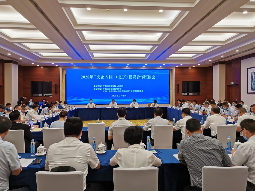 9月3日上午,由廣西壯族自治區人民政府主辦,自治區商務廳、工商聯承辦的2020年“央企入桂”(北京)投資合作座談會在京舉行。廣西壯族自治區副主席周紅波,北京市國資委黨委書記、主任張貴林,廣西壯族自治區各市代表、央企代表共計80余人出席座談會。中鐵中南區域總部(中鐵交通)黨委書記、董事長龍援青在座談會上作交流發言,中鐵中南區域總部(中鐵交通)副總經理陳戈,集團公司投資經營部、中鐵中南(廣西)區域總部有關同志參加座談。