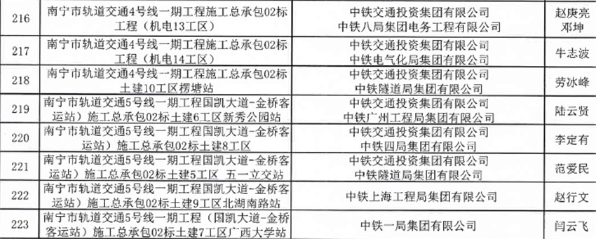 近日,南寧市建筑業(yè)聯(lián)合會公布2020年第一批南寧市建設(shè)工程優(yōu)質(zhì)結(jié)構(gòu)獎獲獎名單,南寧地鐵4號線02標(biāo)3個工區(qū)、5號線02標(biāo)5個工區(qū)獲此殊榮。
