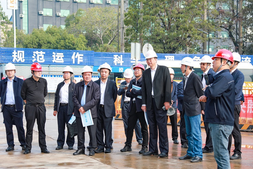 調研組一行先后深入南昌地鐵4號線02標5工區桃苑站、6工區丁公路南站檢查指導,聽取了項目工程概況、施工重難點、生產進度、安全質量等方面情況匯報。
