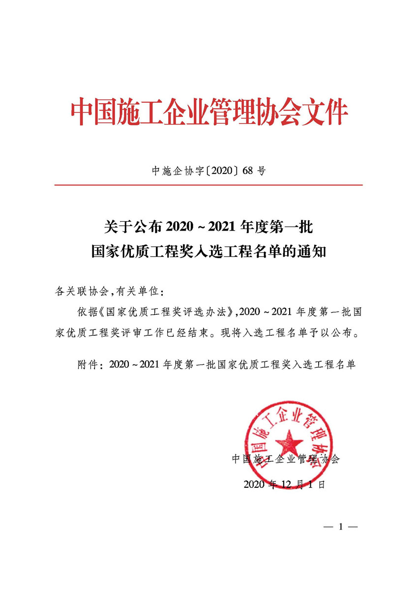 12月1日,中國施工企業管理協會公布了2020—2021年度第一批國家優質工程獎入選工程名單,由中鐵交通投資及總包管理、中鐵三局施工建設的南寧市沙井—南站立交工程獲國家優質工程獎,為中國中鐵在工程建設領域再添一項重磅殊榮。