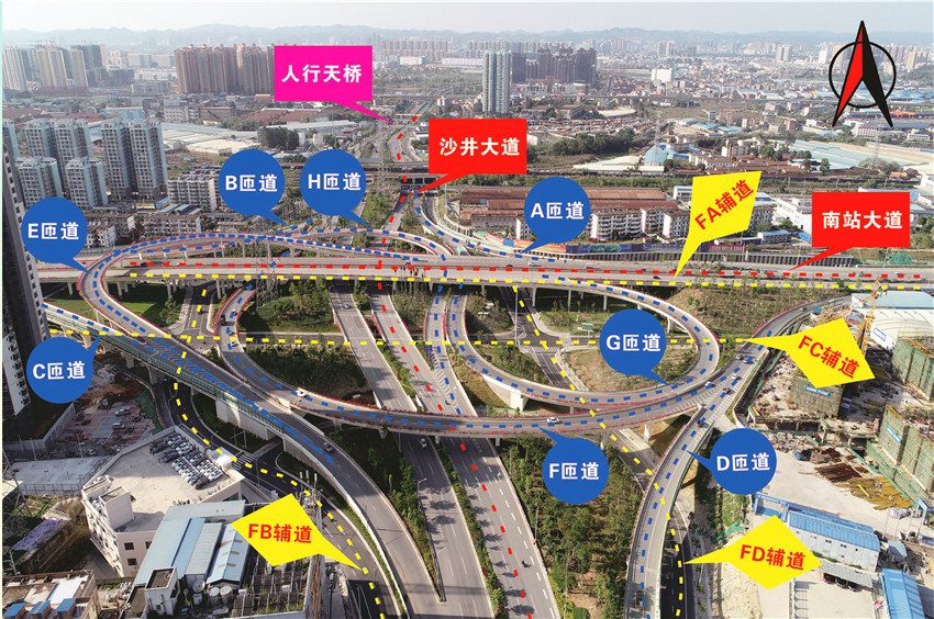 沙井—南站立交位于南寧市規劃“四縱四橫”快速路系統中的第三橫和第一縱交點,處于兩大物流通道交點,是各物流中心與中心區交通聯系通道中的重要轉換節點。南寧市沙井—南站立交工程是目前廣西范圍內設計難度最大、施工情況最復雜、涉及面最廣的大型樞紐互通立交,結構型式為“單首蓿葉與半定向型組合式的三層半全互通立交”,主要包含橋梁工程、道路工程、排水工程、綠化工程、照明工程、交通工程、景觀亮化工程,具有深基坑施工、高壓電塔下施工、地下綜合管線復雜及其整個立交工程數量繁雜、施工工期緊等綜合性特點,安全風險大,且既有鐵路橋下為南寧市著名的十大內澇點之一。項目總投資7.3億元,于2015年1月8日開工建設,2019年1月10日竣工交驗。