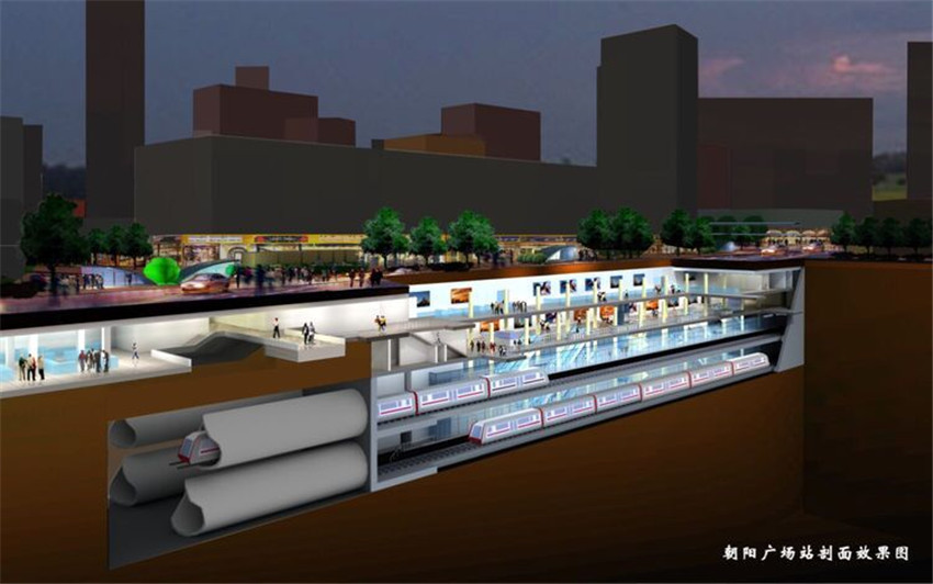 ▲南寧地鐵1號(hào)線朝陽(yáng)廣場(chǎng)站剖面效果圖