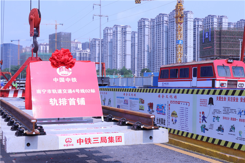 ▲南寧地鐵4號(hào)線鋪軌首排