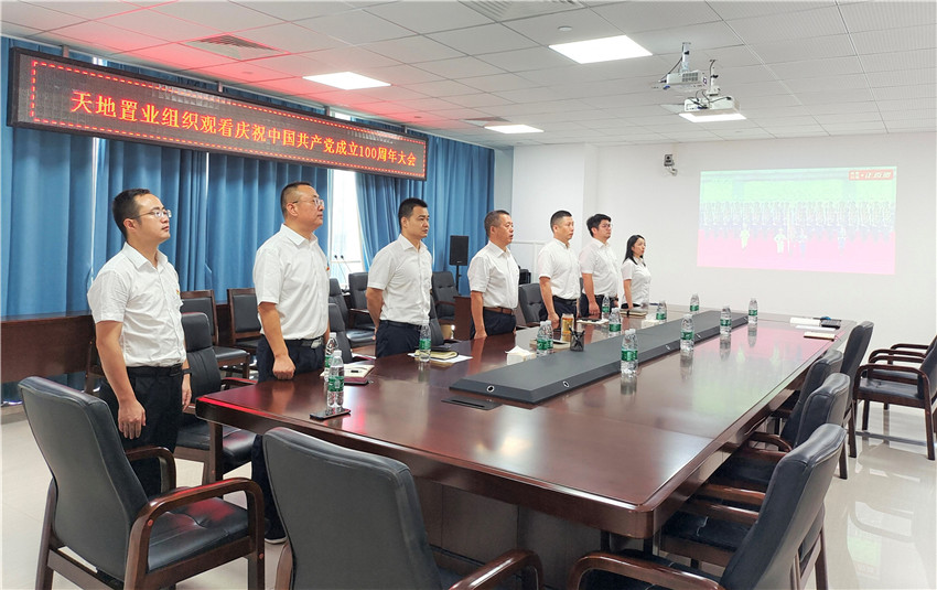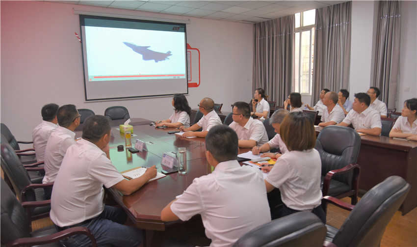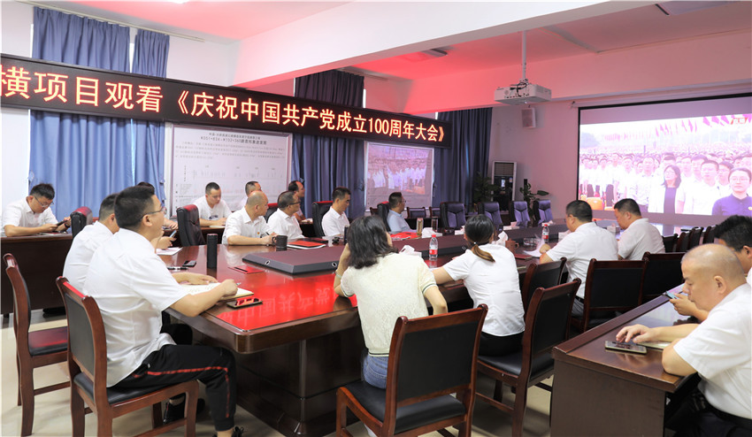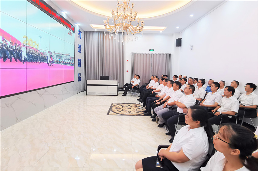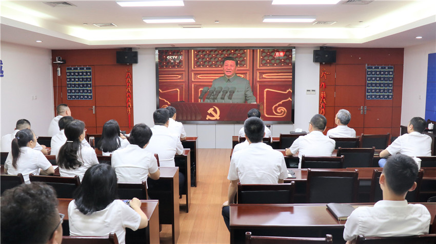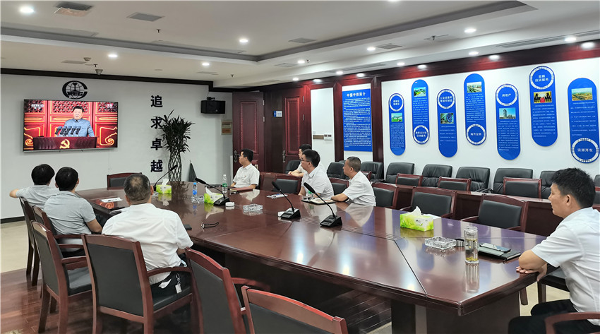 ▲集團(tuán)公司黨委副書(shū)記(主持工作)、副董事長(zhǎng)(主持工作)譚世俊,集團(tuán)公司黨委副書(shū)記、總經(jīng)理李建光及其他在家領(lǐng)導(dǎo)班子成員與機(jī)關(guān)本部全體人員共同觀看大會(huì)直播