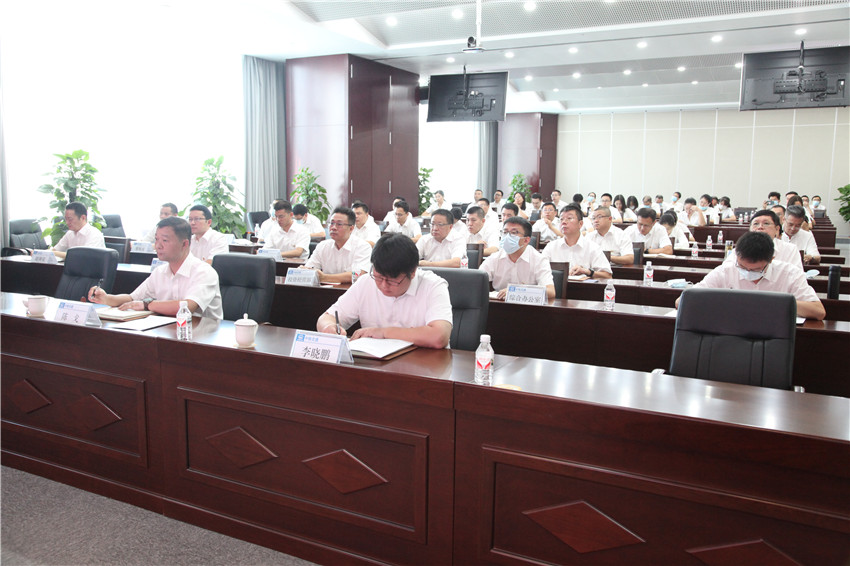 中國中鐵黨委黨史學習教育第六指導組組員冮濤、丁國棟、蘇東波以視頻連線方式聆聽專題黨課,中鐵交通機關各部門及附屬機構全體人員、南寧地鐵5號線黨工委領導班子成員,共計60余人現(xiàn)場聆聽專題黨課。