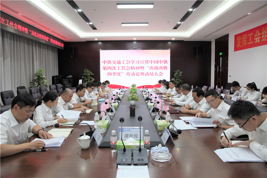 10月13日,中鐵交通工會召開學習宣貫中國中鐵第四次工代會精神暨“決戰決勝四季度”勞動競賽動員大會。集團公司黨委書記、董事長譚世俊出席會議并作重要講話,集團公司副總經理李云峰主持會議并作工會工作安排部署。