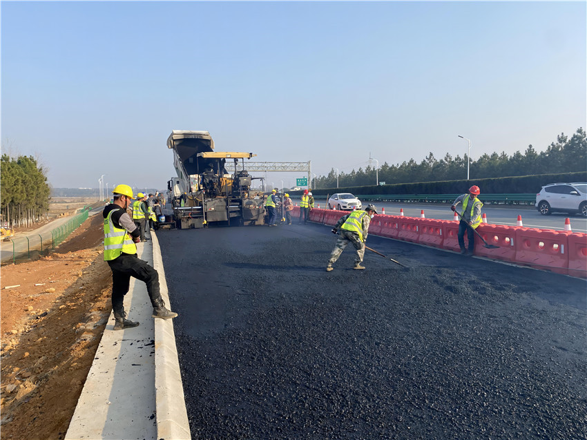2022年元旦佳節期間,江西公司所屬贛新大道項目現場依舊機械轟鳴,建設者們奮戰在各自崗位上,搶抓晴好天氣,順利完成福銀高速保通輔道瀝青攤鋪工作,為全年施工生產工作吹響了號角,迎來了開門紅。
