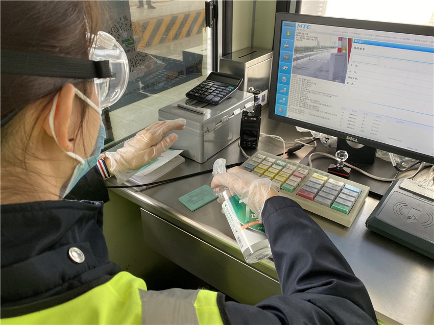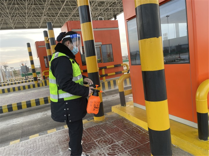 面對(duì)春運(yùn)期間車流大幅增加、疫情防控形勢嚴(yán)峻等情況,綏延項(xiàng)目繃緊“安全保通”和“疫情防控”兩根弦,及時(shí)對(duì)公共區(qū)域、CPC卡通行介質(zhì)及現(xiàn)金進(jìn)行消毒,加強(qiáng)所屬站所進(jìn)出管控,全力以赴打響春運(yùn)保暢戰(zhàn)。