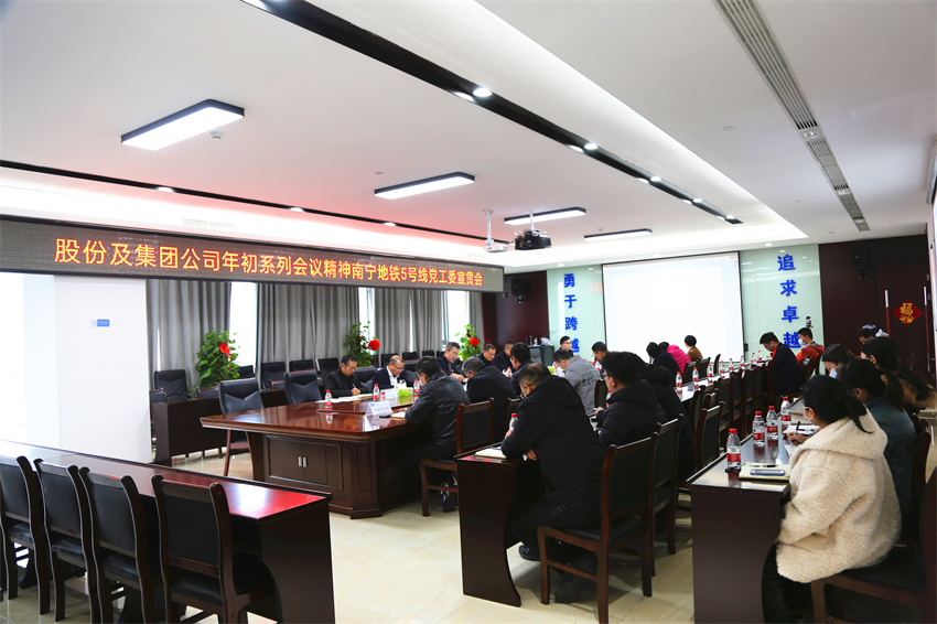 南寧地鐵5號線黨工委召開股份公司和集團公司2022年初系列會議精神宣貫會,對會議重點內容和領導重要講話進行了認真學習,要求全體干部職工要深刻領會系列會議精神的豐富內涵與核心要義,切實把思想和認識統一到股份公司、集團公司的決策部署上來,在思想上形成共鳴,在思路上緊跟形勢,在行動上跟上節奏,在措施上拿出新辦法。