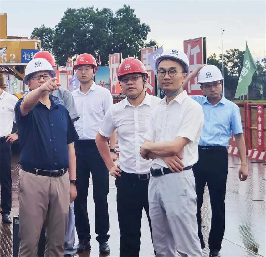 曹偉興一行深入施工現場了解項目總體情況、工程進展、施工重難點以及下一步主橋施工計劃和安全質量卡控情況。曹偉興對項目前期進度表示滿意,對中南公司所屬項目現場安全質量管理、文明施工水平給予充分肯定,并對中國中鐵“開路先鋒”的優良作風表示高度贊揚。同時希望中南公司及所屬項目部繼續發揮好“戰高溫、斗酷暑,抓晴天、搶雨天”的吃苦奉獻精神,在施工過程中進一步優化方案、整合資源,精心組織、科學施工,嚴格落實安全生產責任,合理安排工期,確保安全、質量、環保、施工進度各項目標圓滿實現。曹偉興要求政府相關部門要高度重視當前項目建設工作,各司其職、各負其責,對項目推進過程中存在的問題要及時溝通協調。